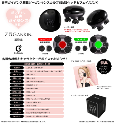 本コラボレーションモデルは、本体天面に作品をイメージしたモチーフを配置し、「喜多川海夢」による新規録り下ろしボイスを搭載。電源オンやオフ、Scalpモード、Faceモード、回転レベル、EMS等、各操作に応じてガイドしてくれるオリジナルボイス計15ワードを楽しみながら頭皮や表情筋のケアが可能です。尚、購入特典として「喜多川海夢」描き下ろしイラストマイクロファイバークロスを付属します。
