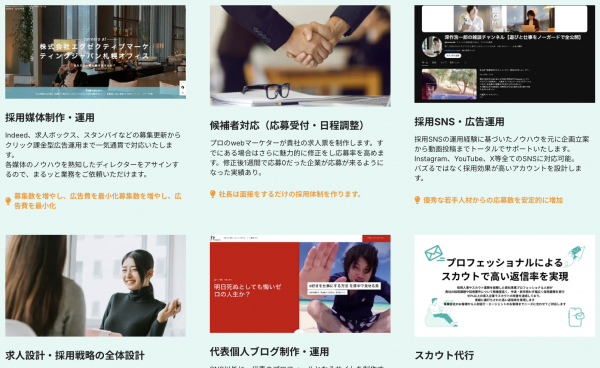 スカウト、SNS運用、Indeed等の求人媒体運用、応募管理、面接調整までを一気通貫で代行