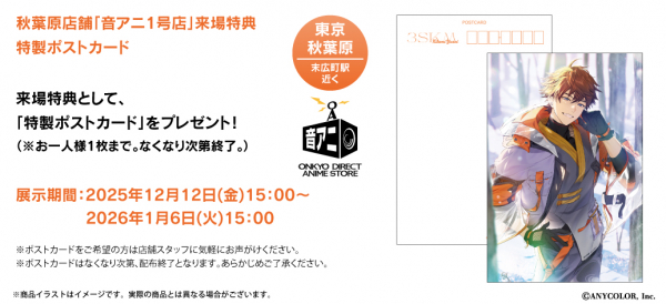 また12月12日(金)15:00~12月14日(日)20:00は混雑を想定し、ご入店整理券の配布をさせていただきます。なお整理券配布の情報、更新につきましては適宜「音アニ」公式X(@ONKYO_ANIME)にてお知らせいたします。