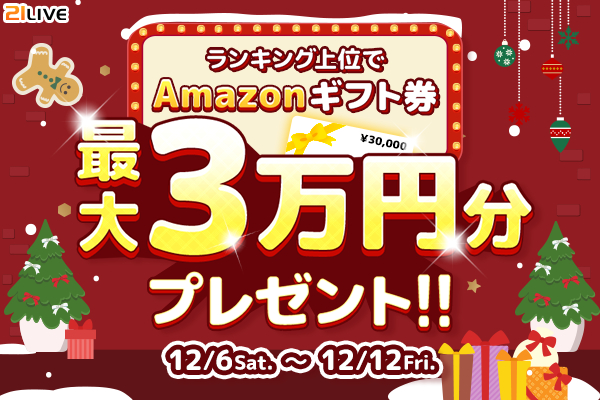 見事上位にランクインしたライバーには、最大3万円分のAmazonギフト券をプレゼントいたします。