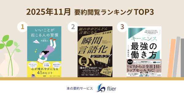 本ランキングは、flierの有料会員を対象に、スマホアプリおよびウェブのアクセス数(紹介書籍の要約閲覧数)を合算し順位付け。集計期間は、2025年10月25日~2025年11月24日です。