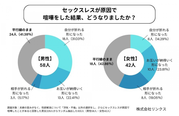 ■ セックスレスが原因の喧嘩、半数は“平行線のまま”