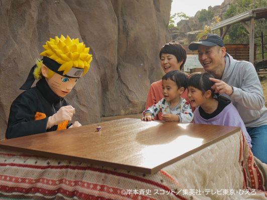 兵庫県淡路島「ニジゲンノモリ アニメ淡路島公園」にある、アニメパーク「ニジゲンノモリ」の人気アトラクション「NARUTO&BORUTO 忍里」では、うずまきナルトと一緒に写真撮影やゲームができる冬のグリーティングイベントを2025年12月6日(土)より開催いたします。今回のグリーティングでは、冬休みにピッタリの「ナルトと独楽回し対決」と「ナルトとこたつポカポカフォト」実施いたします。