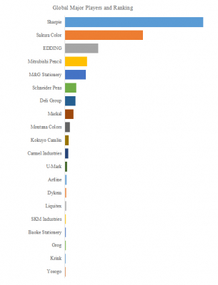 特に、SharpieとMitsubishi Pencilは、機能性・ブランド認知・販路の三拍子がそろったグローバルプレイヤーとして、北米・アジア市場で安定した地位を築いている。一方で、M&GやDeli Groupといった中国企業は、OEM供給網の強みとコスト競争力を武器に新興国市場への浸透を加速させており、価格主導型の競争が一部セグメントで激化している。また、ストリートアート分野ではMontana Colorsが独自のポジショニングを確立しており、用途別の差別化戦略も市場ダイナミクスに影響を及ぼしている。