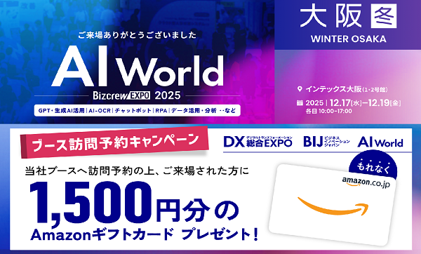 ・展示会URL :AI World 2025 冬 大阪(https://www.bizcrew.jp/expo/2025-ai-win-osaka)