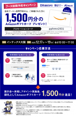 もれなく展示会事務局より「Amazonギフト券 1500円分」が贈呈されます。