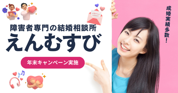 株式会社グローバル・ワンが運営する障害のある方向け結婚相談所「グローバルマリッジえんむすび」(所在地:東京都中央区、代表:山本剛)は、これまでの婚活支援において成婚率25%の実績を誇り、障害のある方が婚活に一歩踏み出しやすくなるよう、通常55,000円(税込)の入会金が無料になる 「年末婚活スタート応援キャンペーン」を2025年12月1日~2025年12月31日まで実施します。