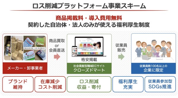 この廃棄課題を解決するため、社会貢献型職域販売サイト「クローズドマート」を運営する