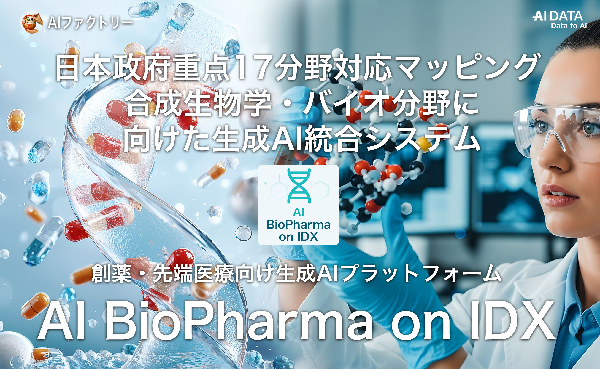 AIデータ社は、AI BioPharma on IDX を政府重点17分野対応シリーズの中核として位置づけ、バイオ研究・産業化のDXを加速していきます。