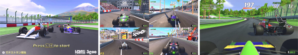 クイックレースでさっと遊んだり、チャンピオンシップで実力を試したり、タイムアタックでベストラップ更新を目指したりなど、多彩な遊び方が可能。世界各国をモチーフにした14サーキット、実在するフォーミュラカーをモデルにした19台のマシンを収録。