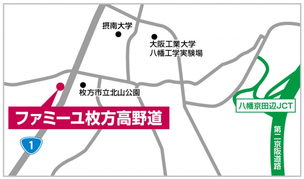 所在地:大阪府枚方市高野道1丁目23番50号