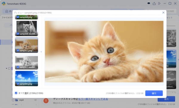 Tenorshare 4DDiGはデータ復旧の専門家です。WindowsとMacに対応しており、様々な状況で失われたデータを復元することができます。AI技術を使用して、失われた動画や破損した動画を復元可能です。