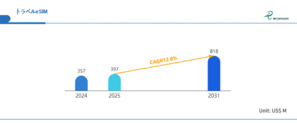 LP Information調査チームの最新レポートである「世界トラベルeSIM市場の成長予測2025~2031」(https://www.lpinformation.jp/reports/57952/travel-esim)によると、2025年から2031年の予測期間中のCAGRが12.8%で、2031年までにグローバルトラベルeSIM市場規模は8.18億米ドルに達すると予測されている。