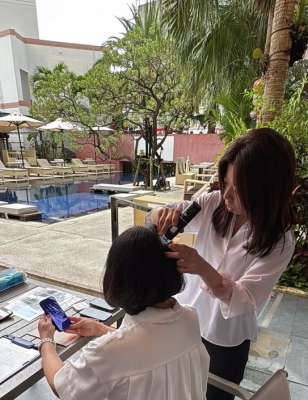 期間中、ホテルのプールサイドにて「頭皮診断イベント」を実施。マイクロスコープで頭皮の状態を診断し、お客様の髪の悩みに対して「艶髪ソムリエ(R)」が個別にアドバイスを行いました。