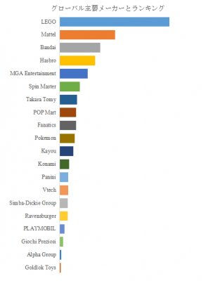 企業別の勢力図は、LEGOが首位、Mattelが第二位、Bandaiが第三位という構造が示す通り、IP力、企画力、生産体制が市場リーダーを決定づける。
