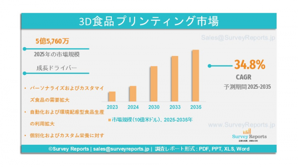 詳細レポートへのアクセスはこちら:https://www.surveyreports.jp/industry-analysis/3d-food-printing-market/1038233