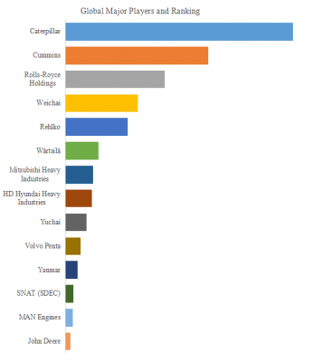 世界の主要ディーゼルエンジン企業には、Caterpillar、 Cummins、 Rolls-Royce Holdings、 Weichai、 Rehlko、 Wärtsilä、 Mitsubishi Heavy Industries、 HD Hyundai Heavy Industries、 Yuchai、 Volvo Penta、 Yanmar、 SNAT (SDEC)、 MAN Engines、 John Deere。