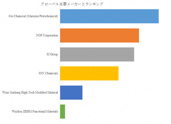 LP Informationの企業分析によると、AMSDの世界主要製造業者には Goi Chemical(Maruzen Petrochemical)、NOF Corporation、SI Group が名を連ね、2024年時点で上位3社が世界市場の約72%を占める寡占市場となっている。いずれの企業も芳香族化学品に深い知見を持ち、高純度グレードの安定供給力と用途開発力を備える点が競争力の源泉である。