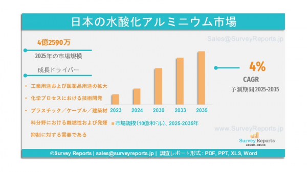 詳細レポートへのアクセスはこちら:https://www.surveyreports.jp/industry-analysis/japan-aluminum-hydroxide-market/1038270