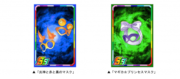 ダンジョンのボスモンスターを倒すと、まれに新たな限定子分カード「炎神と赤と黒のマスク」「マギカ☆プリンセスマスク」が手に入ります。限定子分カードは複数枚集めると進化ができ、子分スキルの効果が強力になります。