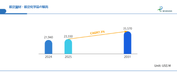 LP Information調査チームの最新レポートである「世界航空資材・航空化学品の販売市場の成長予測2025~2031」(https://www.lpinformation.jp/reports/56408/distribution-of-aviation-materials-and-aviation-chemicals)によると、2025年から2031年の予測期間中のCAGRが7.3%で、2031年までにグローバル航空資材・航空化学品の販売市場規模は355.7億米ドルに達すると予測されている。
