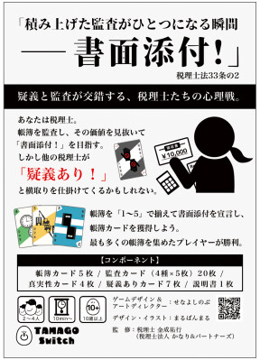 帳簿が完成した瞬間、プレイヤーは、信頼性の証明である「書面添付!」を宣言します。