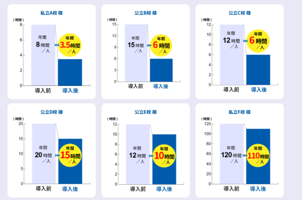私立A高校様 導入前:年間 8時間/人→導入後:年間3.5時間/人(4.5時間減少)