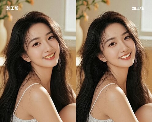 Meituは、中国発の画像編集アプリで、AIを活用した人物補正機能に強みがあります。歯のホワイトニング機能も備えており、個別に調整するというよりは、顔全体の印象を自動解析しながらバランスよく整えるタイプの補正が特徴です。