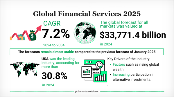 二〇二五年七月のグローバル・マーケット・モデル予測は、世界の金融サービス産業が引き続き拡大していることを示しています。デジタルトランスフォーメーションの加速、代替投資への参加拡大、そして地域を超えた金融商品へのアクセス向上が成長を後押ししています。