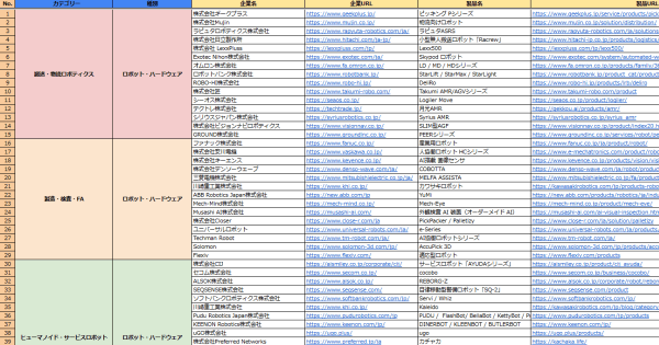 カオスマップを資料請求いただいた方には、製品名や製品URL情報を記載した「フィジカルAIサービス提供企業リスト(Excel)」も併せて無償でご提供いたします。