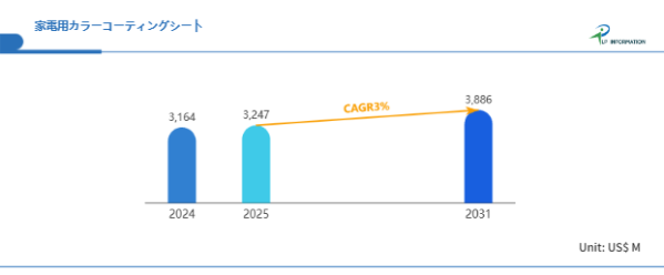 LP Informationが発表した最新レポート「世界家電用カラーコーティングシート市場の成長予測2025~2031」(https://www.lpinformation.jp/reports/53399/household-appliances-color-coated-sheet)によれば、本市場は2025年から2031年にかけて年平均成長率(CAGR)3%で拡大し、2031年には3886百万米ドルに達すると予測されている。この成長を支える背景には、グローバル市場における家電需要の堅調な拡大と、デザイン性・耐久性の両立を求める消費者ニーズの高まりがある。さらに、新興国市場での家電普及率上昇や、環境負荷を低減する低VOC塗装技術の採用拡大など、複数の成長ドライバーが作用している。市場規模の持続的な拡大は、既存プレーヤーの収益機会を拡大させるのみならず、新規参入企業にとっても高い魅力を備えた分野であることを示している。
