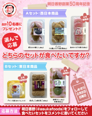 このたび、西日本・東日本の2月の新作を含む和菓子セットがもらえるキャンペーン「選んで応募 どちらのセットが食べたいですか?」を開始しました。キャンペーンの開催期間は2026年1月23日から2月8日までとなります。