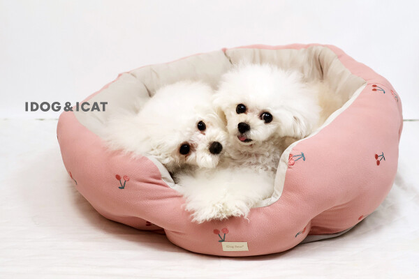 「チェリーのラウンドベッド」は、iDog fleurらしいチェリーの刺繍をあしらい、甘すぎない可愛らしさをプラス。