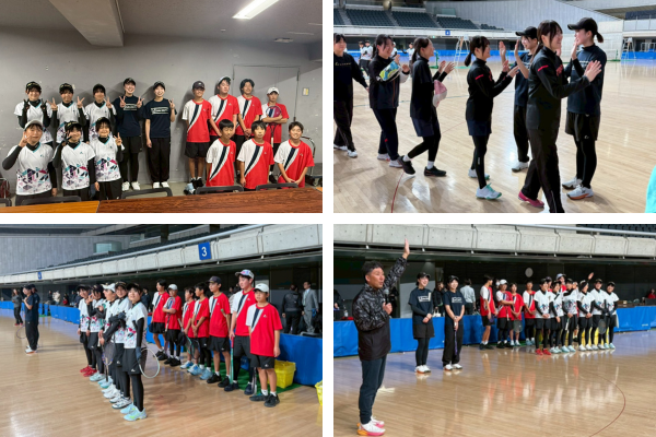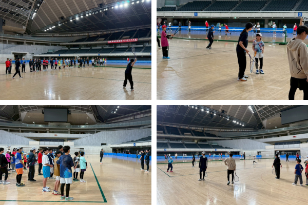 東京インドア2026に出場した前田梨緒選手・中谷さくら選手(明治大学)がスペシャルゲストとして参加。補助員として清明学園中学校の選手にも協力をいただきました。
