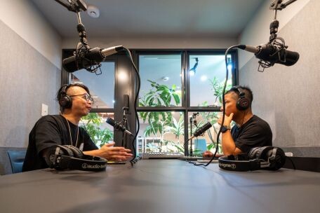 3階はシェアオフィスおよびイベント利用が可能なフロアで、中央にはテーブルを配置、利用者同士の自然な交流が生まれる設計としている。加えて、Podcast収録が可能なラジオブースやバーカウンターも備え、トークイベントや飲食イベント、学習塾の開業など、用途を限定しない多様な活用がすでに始まっている。