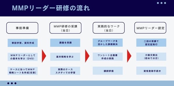 また、MMPリーダーになると、MMPワンシート企画書やMMP戦略シートA・Bなど、自分の持つMMPグループ各資格のMMPツールを活用してMMP研修を実施できます。