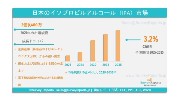 ● 2035年までの日本のイソプロピルアルコール(IPA)市場における需要および機会分析