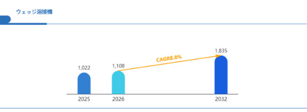 人件費上昇や品質ばらつき低減の要求から、自動化されたウェッジ溶接機や半自動・全自動ラインへの投資が進んでいます。温度・圧力・送りの精密制御により歩留まり向上とコスト削減が期待されます。