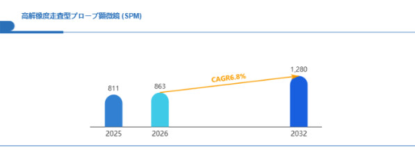 高解像度走査型プローブ顕微鏡 (SPM)は半導体、エネルギー機器、医療デバイス等の品質保証や故障解析へ応用範囲が広がっています。装置の操作性向上と標準化により、研究用途から製造現場でのルーチン計測への導入が進み、市場拡大が期待できます。