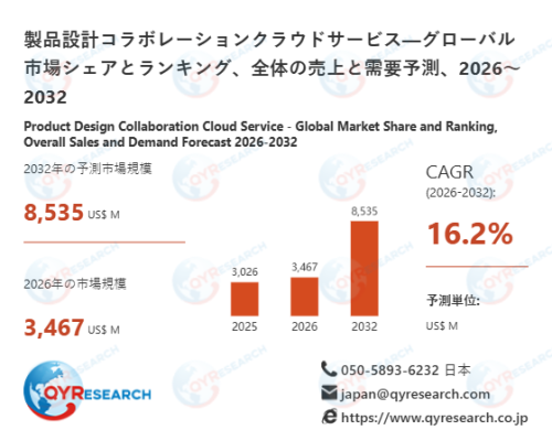製品設計コラボレーションクラウドサービスの世界市場は、2025年に約3026百万米ドルと推定されており、2026年には3467百万米ドルに達する見通しです。今後は、2026年から2032年にかけて年平均成長率(CAGR)16.2%で成長し、2032年には約8535百万米ドル規模に拡大すると予測されています。