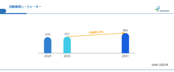 LP Information調査チームの最新レポートである「世界自動車用シートヒーター市場の成長予測2025~2031」(https://www.lpinformation.jp/reports/564976/automotive-seat-heater)によると、2025年から2031年の予測期間中のCAGRが3.4%で、2031年までにグローバル自動車用シートヒーター市場規模は8.02億米ドルに達すると予測されている。