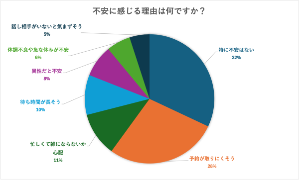 一方で、不安として多く挙がったのは「予約が取りにくそう」「待ち時間が長そう」といった時間面の懸念や、「相性が合わなかった場合の逃げ場がない」「異性だと少し不安」といったマンツーマンならではの心理的ハードルでした。