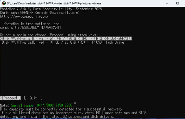 復元手順(PhotoRec):