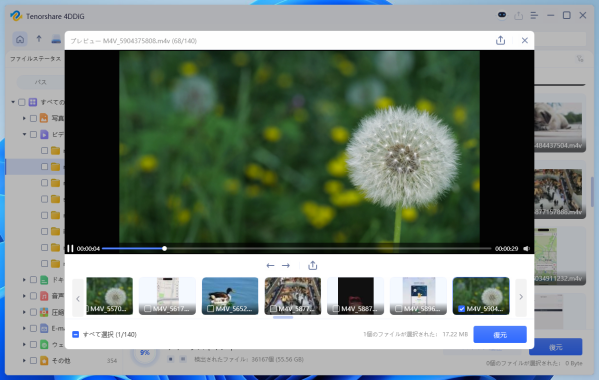 3-ファイル種類や名前でフィルタリング、プレビュー機能で復元前に内容を確認