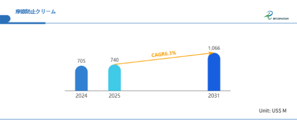 LP Information調査チームの最新レポートである「世界摩擦防止クリーム市場の成長予測2025~2031」(https://www.lpinformation.jp/reports/113757/anti-chafing-cream)によると、2025年から2031年の予測期間中のCAGRが6.3%で、2031年までにグローバル摩擦防止クリーム市場規模は10.66億米ドルに達すると予測されている。