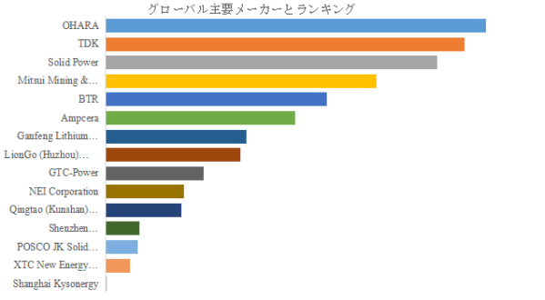 LP Informationのトップ企業研究センターによると、全固体電池用電解質の世界的な主要製造業者には、OHARA、TDK、Solid Power、Mitsui Mining & Smelting、BTR、Ampcera、Ganfeng Lithium Group、LionGo (Huzhou) New Energy、GTC-Power、NEI Corporationなどが含まれている。2024年、世界のトップ5企業は売上の観点から約58.0%の市場シェアを持っていた。