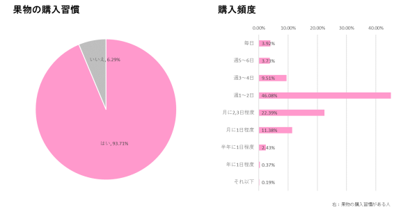 今回実施した調査によると、子育て世帯における果物購入習慣は定着しており、果物が日常的に取り入れられている食品であることが改めて確認された。