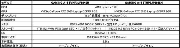 両モデルの主な仕様は以下のとおりです。