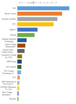 LP Informationのトップ企業研究センターによると、金属材料試験サービスの世界的な主要製造業者には、SGS、 Bureau Veritas、 Eurofins Scientific、 TÜV、 Applus+、 Intertek、 Element Materials Technology、 Centre Testing International Group Co., Ltd. (CTI)、 Suzhou Sushi Testing Group Co., Ltd.、 Laboratory Testing Inc (LTI)、 AHK Group、 ALS Limited、 NCS Testing Technology Co., Ltd、 China Testing&Certification International Group Co., Ltd. (CTC)、 Guangzhou GRG Metrology & Test Co., Ltd、 EMTEK CO., LTD.、 Pony Testing International Group Co., LTD.、 Sinosteel Group Corporation Limitedなどが含まれている。