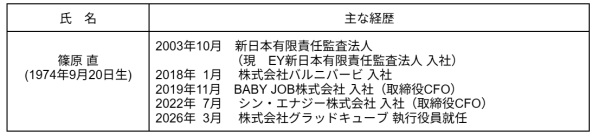 当社は現在、事業拡大に伴う経営管理体制の強化および財務戦略の高度化を最優先課題の一つとして掲げております。篠原氏が執行役員に就任することで、同氏の持つ財務・会計における高度な専門的知見を活かし、当社グループの経営基盤のさらなる強化と持続的な企業価値の向上を加速させてまいります。